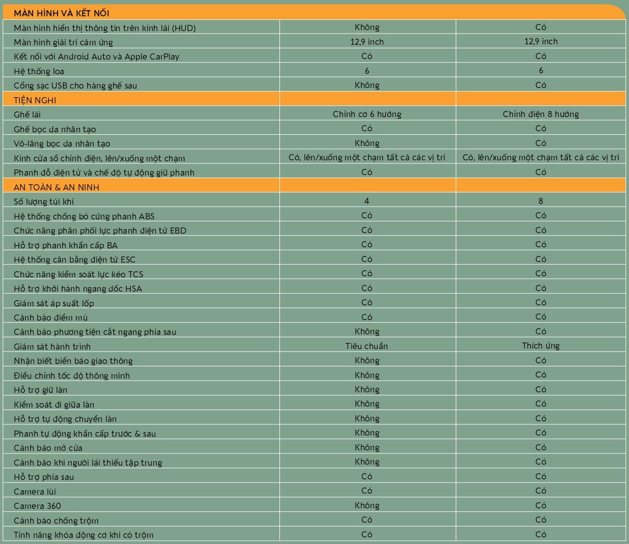 Phiên Bản Giá Xe