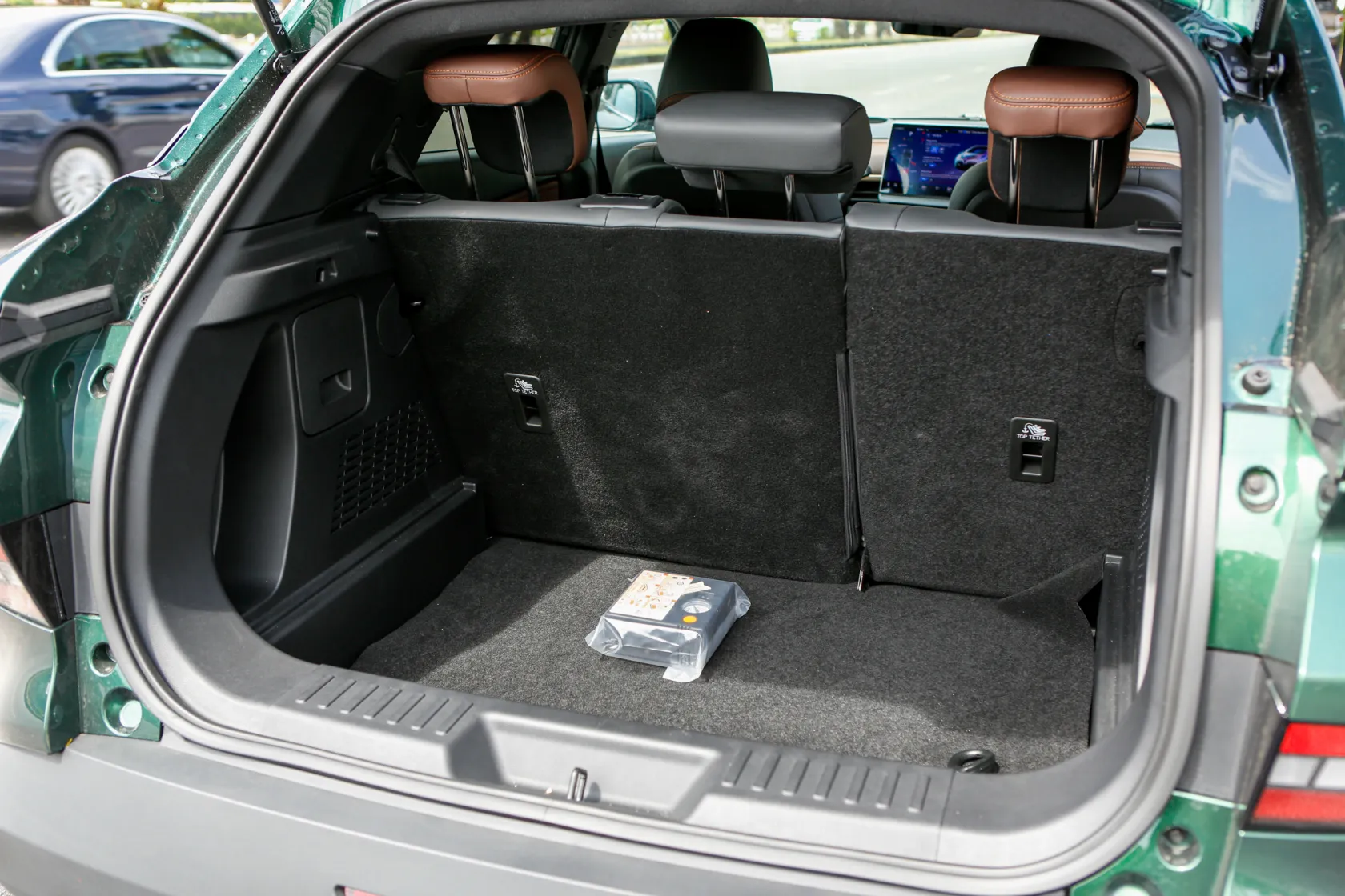 Điểm nhấn tại khu vực táp-lô chính là màn hình giải trí trung tâm kích thước lớn, hướng hẳn về phía người lái. Phía dưới là các nút điều khiển chức năng.