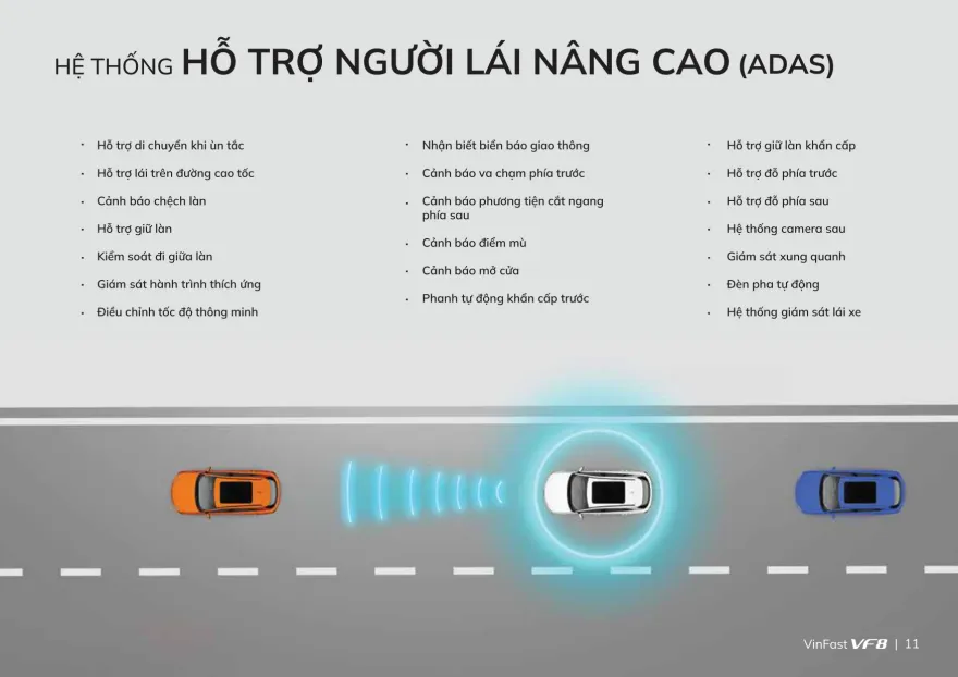 VinFast VF8  gây ấn tượng mạnh với các chuyên gia quốc tế khi sở hữu khá nhiều tính năng hỗ trợ lái tiên tiến gồm: