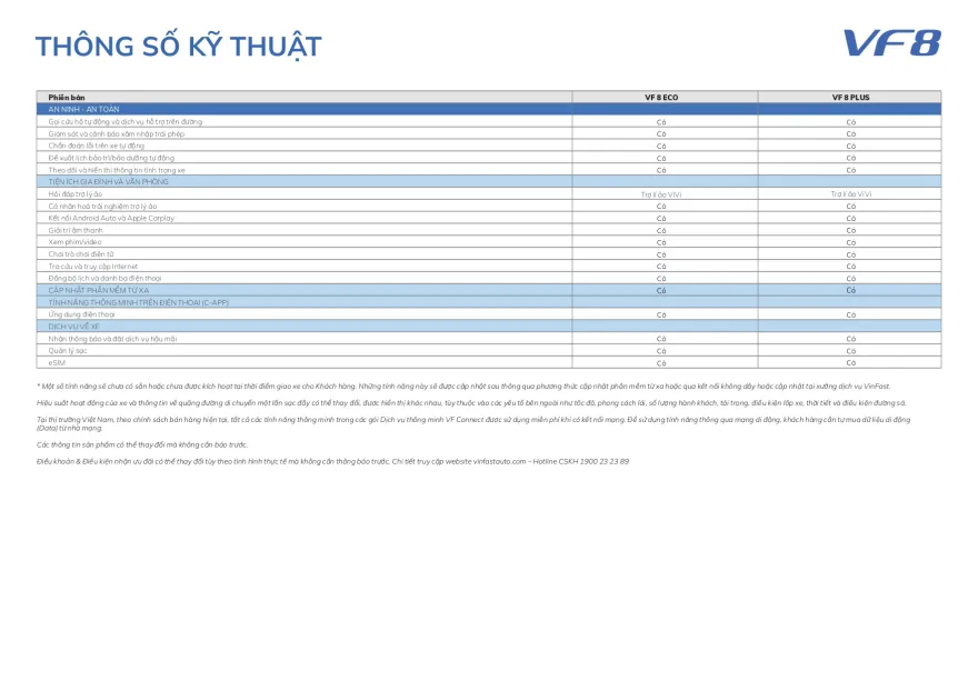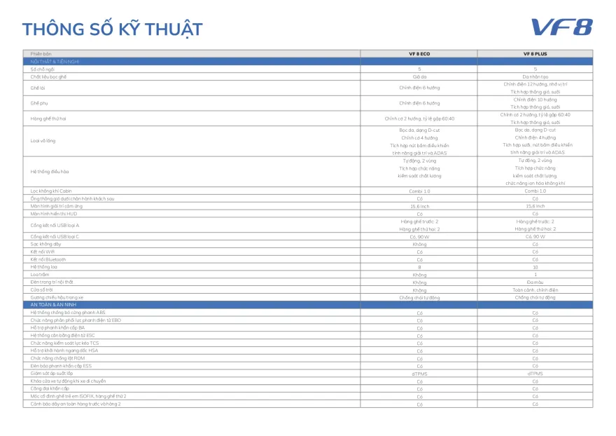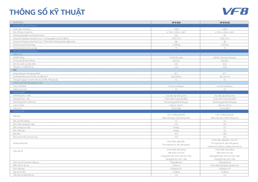 QUÀ TẶNG KHI MUA VINFAST VF8 ECO & VF8 PLUS